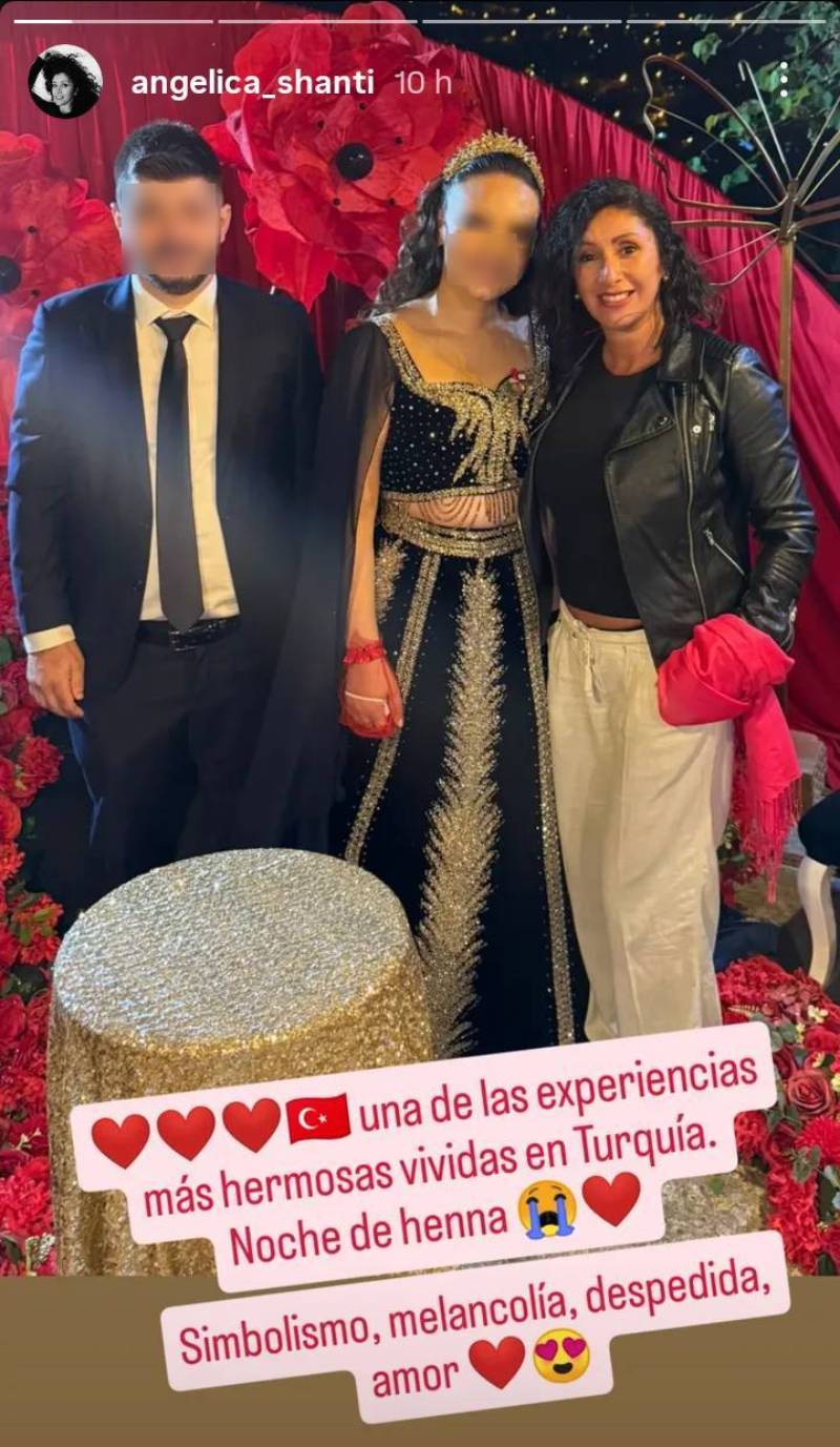 Un mes atrás, Angélica asistió a una ceremonia previa a la boda del sobrino de su pololo, la petición de mano. Ahora estuvo presente en una “Noche de henna”, como lo escribió en una historia de Instagram, destacando que a su juicio este fue un significativo evento lleno de “simbolismo, melancolía, despedida y amor”.