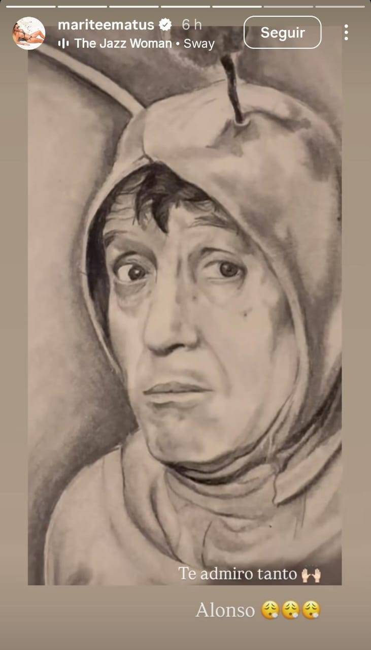 “Te admiro tanto, Alonso”, escribió Marité Matus en una historia de Instagram. En ella, compartió orgullosa un dibujo que su hijo hizo del Chapulín Colorado, el querido superhéroe que fue interpretado por Roberto Gómez Bolaños.