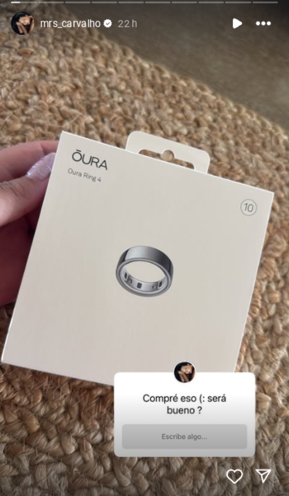 En sus historias de Instagram, la chica reality publicó una foto en la que muestra que compró un Oura Ring 4. “Compré eso, ¿será bueno?”, consultó a sus seguidores.
