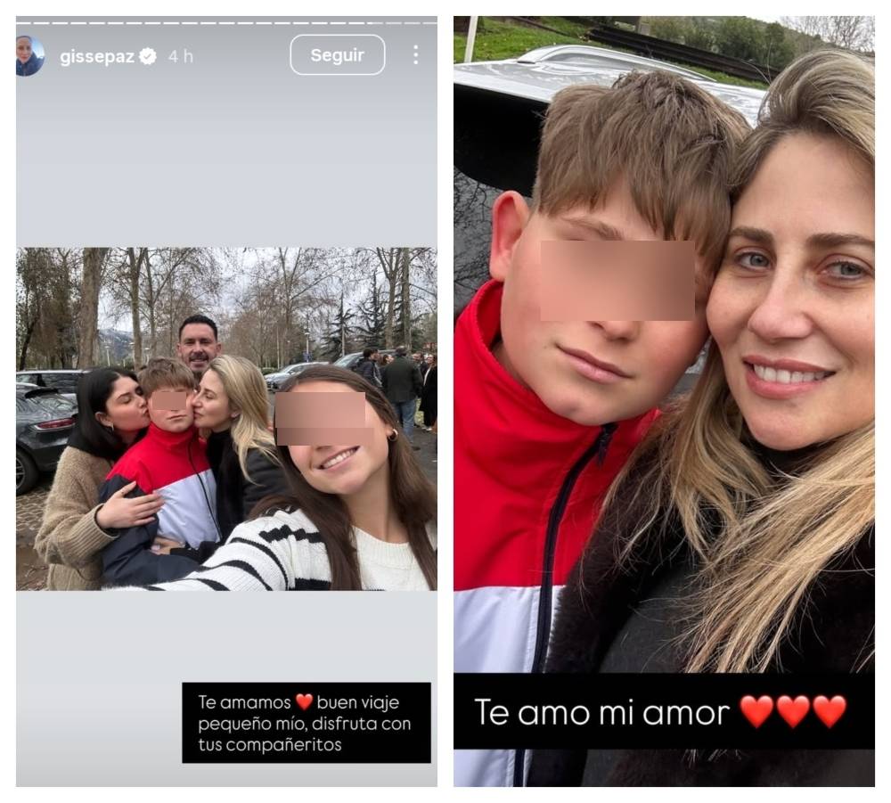 En sus historias de Instagram, Gissela publicó una foto en la que aparece junto a su esposo e hijos. “Te amamos. Buen viaje, pequeño mío. Disfruta con tus compañeritos”, escribió en la postal.