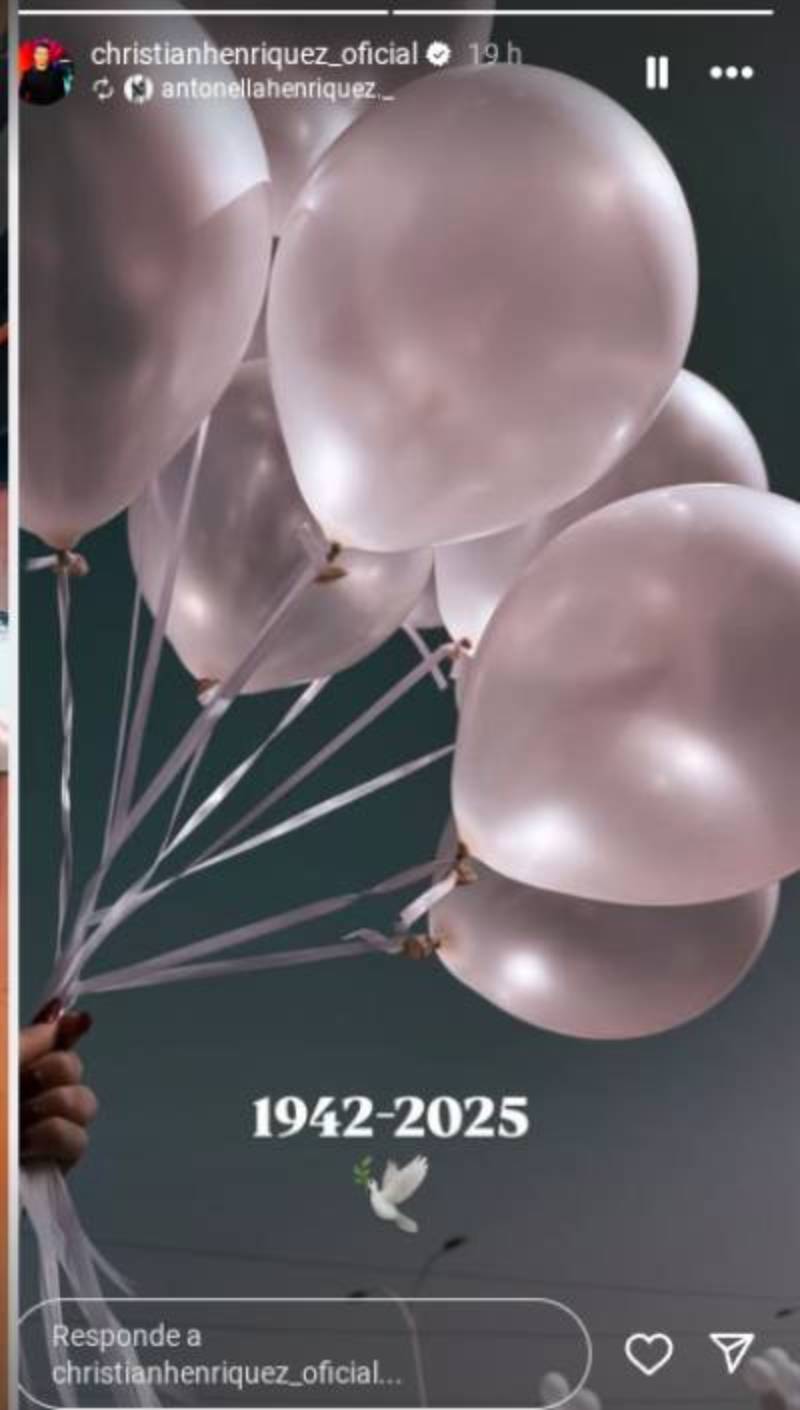 Posteriormente, Christian compartió una simbólica imagen de un manojo de globos blancos a punto de ser liberados hacia el cielo, una fotografía que también compartió en redes su hija, Antonella Henriquez.