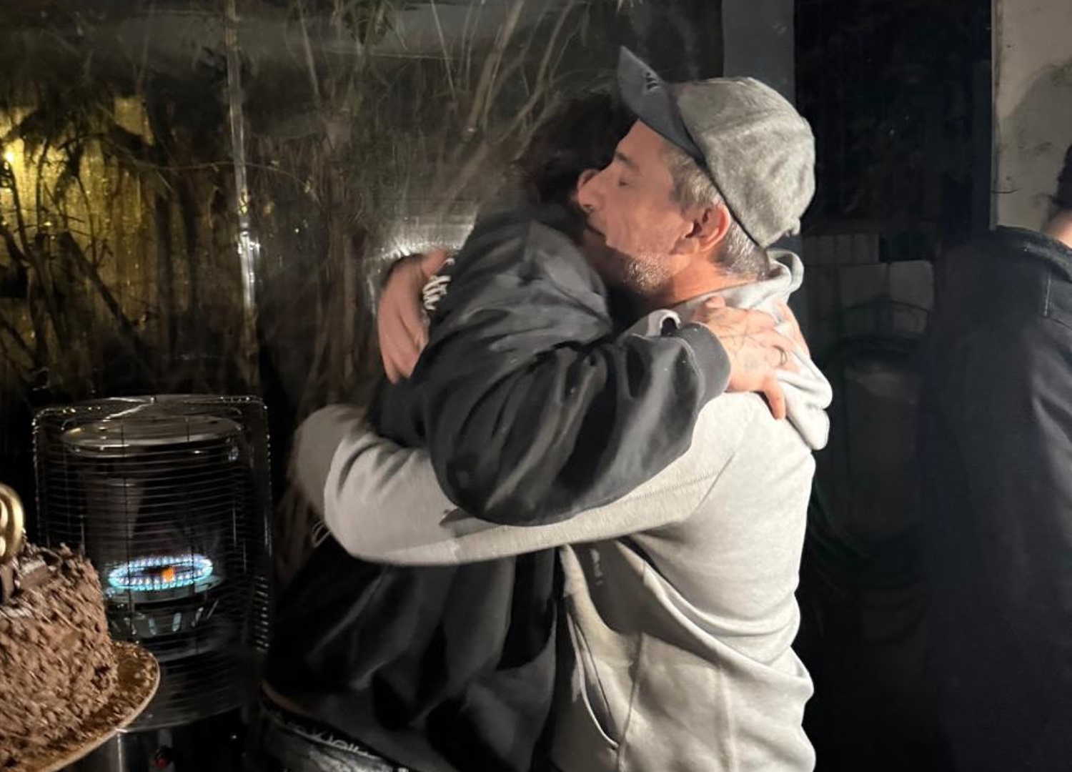 Dos fotografías sintetizaron la celebración familiar: la primera los capturó cantando el cumpleaños con una torta de chocolate y en la segunda el conmovedor abrazo entre padre e hijo.