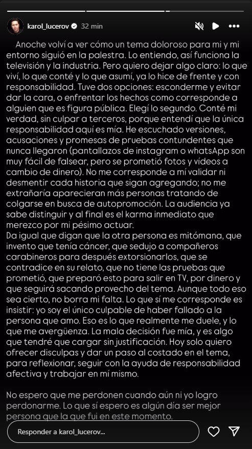 Finalmente, Karol Lucero reiteró el mea culpa que había realizado anteriormente y pidió perdón por sus actitudes.