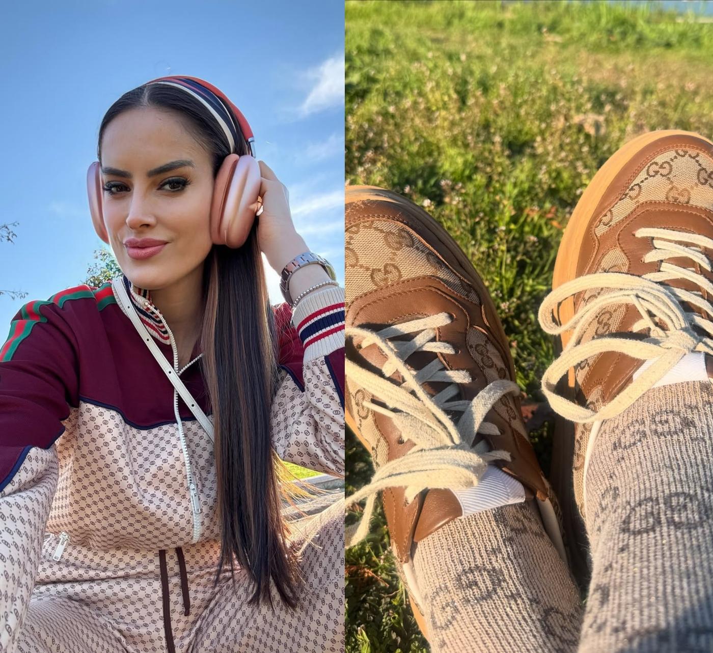 Deportiva al estilo Gucci: Adriana Barrientos convierte el paseo con su perrita en una muestra de glamour