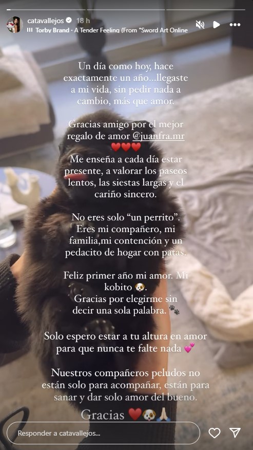 Posteriormente, la creadora de contenido reveló la importancia que tiene el perrito en su vida: "Me enseña a cada día estar presente, a valorar los paseos lentos, las siestas largas y el cariño sincero. No eres solo 'un perrito', eres mi compañero, mi familia, mi contención y un pedacito de hogar con patas".