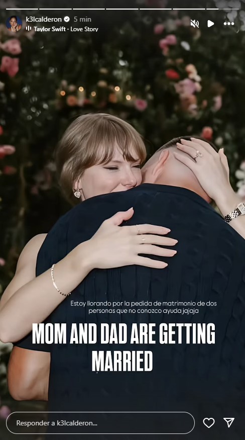 Tras lo anterior, subió otra imagen de la pareja abrazándose y lanzó un gracioso comentario: "Estoy llorando por la pedida de matrimonio de dos personas que no conozco, ayuda. Mamá y papá se van a casar".