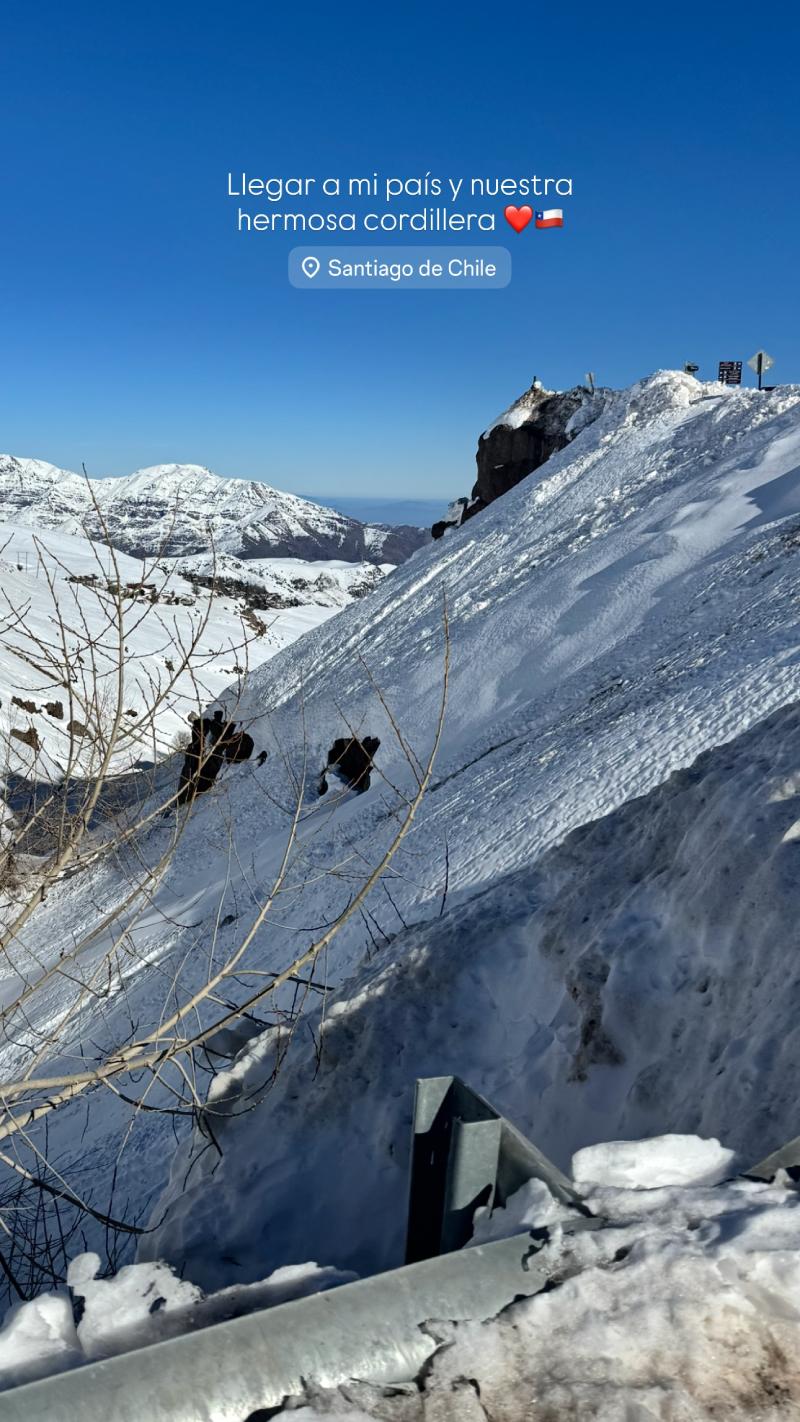 “Llegar a mi país y nuestra hermosa cordillera”, resaltó junto con los emoticones de corazón y una bandera nacional, donde deja entrever la mezcla de emociones que siente.