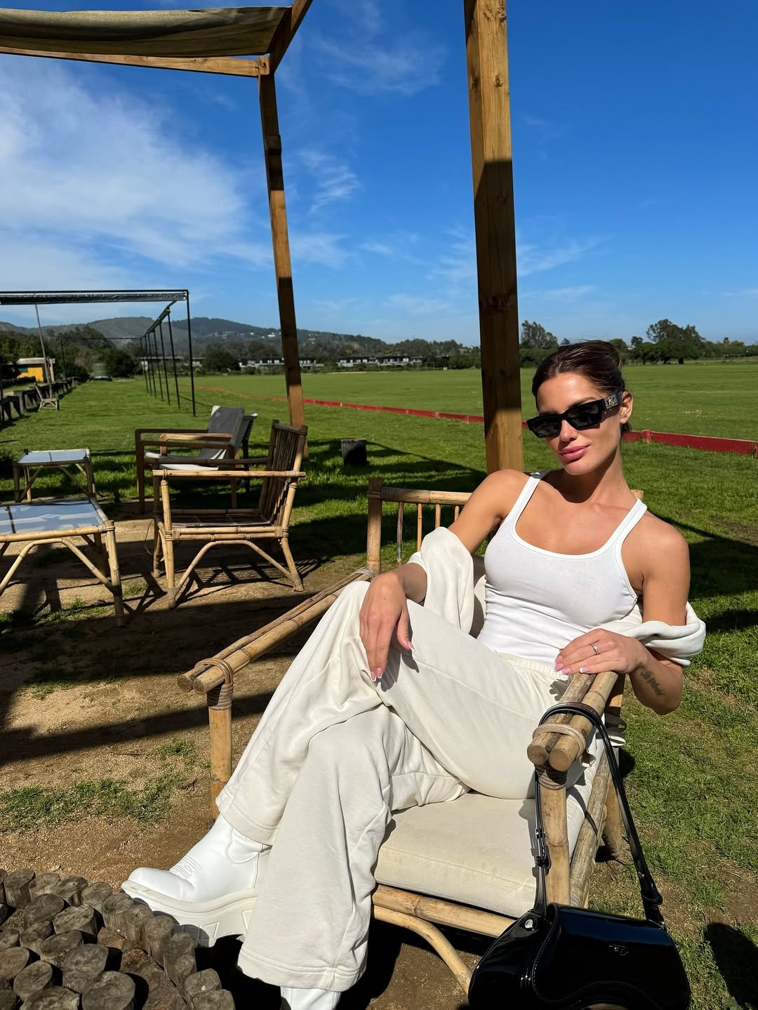 Para un día de paseo, Gala Caldirola escogió un look desenfadado. Su calzado resaltó por su vistoso modelo de botas vaqueras blancas con plataforma, con las que posó en un escenario natural único.