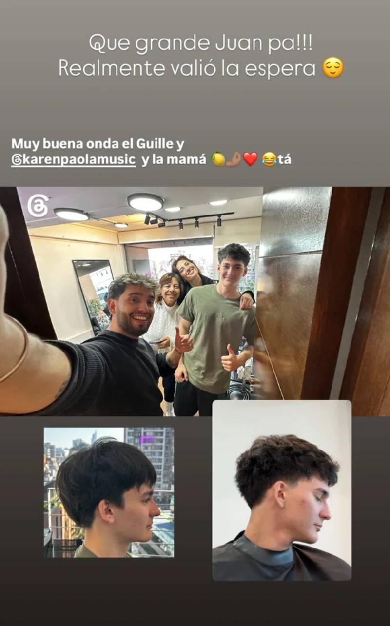 Este look resaltó sus facciones con un aire más actualizado. “Qué grande Juan Pa’, realmente valió la espera”, escribió Karen en su historia revelando que su hijo tomó cita en la apretada agenda del barbero.