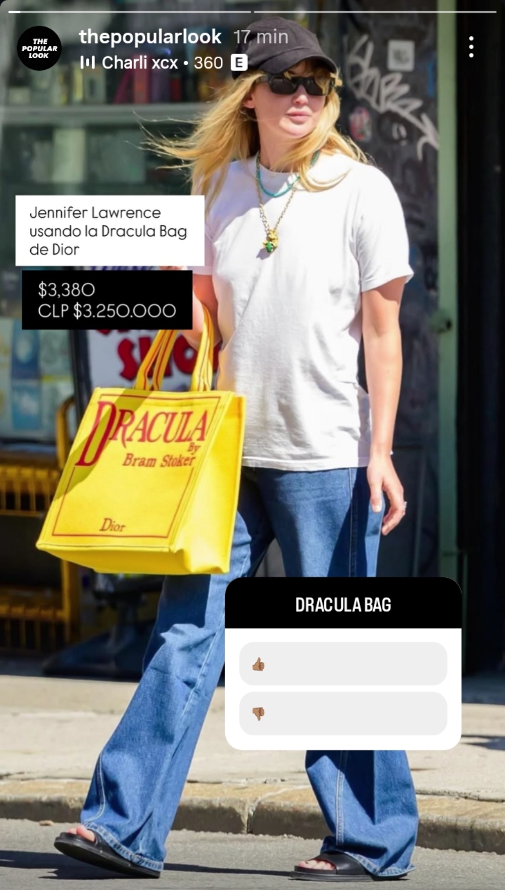 Otra de las celebridades vistas usando el bolso fue Jennifer Lawrence, quien lo combinó con una polera blanca, pantalón denim azul, lentes de sol y gorra.