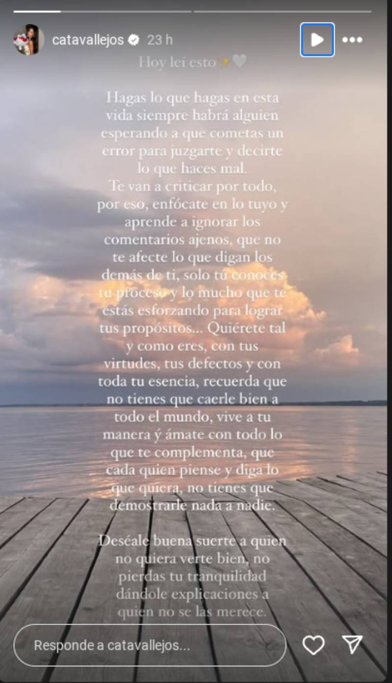 "Hagas lo que hagas en esta vida siempre habrá alguien esperando a que cometas un error para juzgarte y decirte lo que haces mal", se lee en el texto, que además aconseja enfocarse en los asuntos propios.