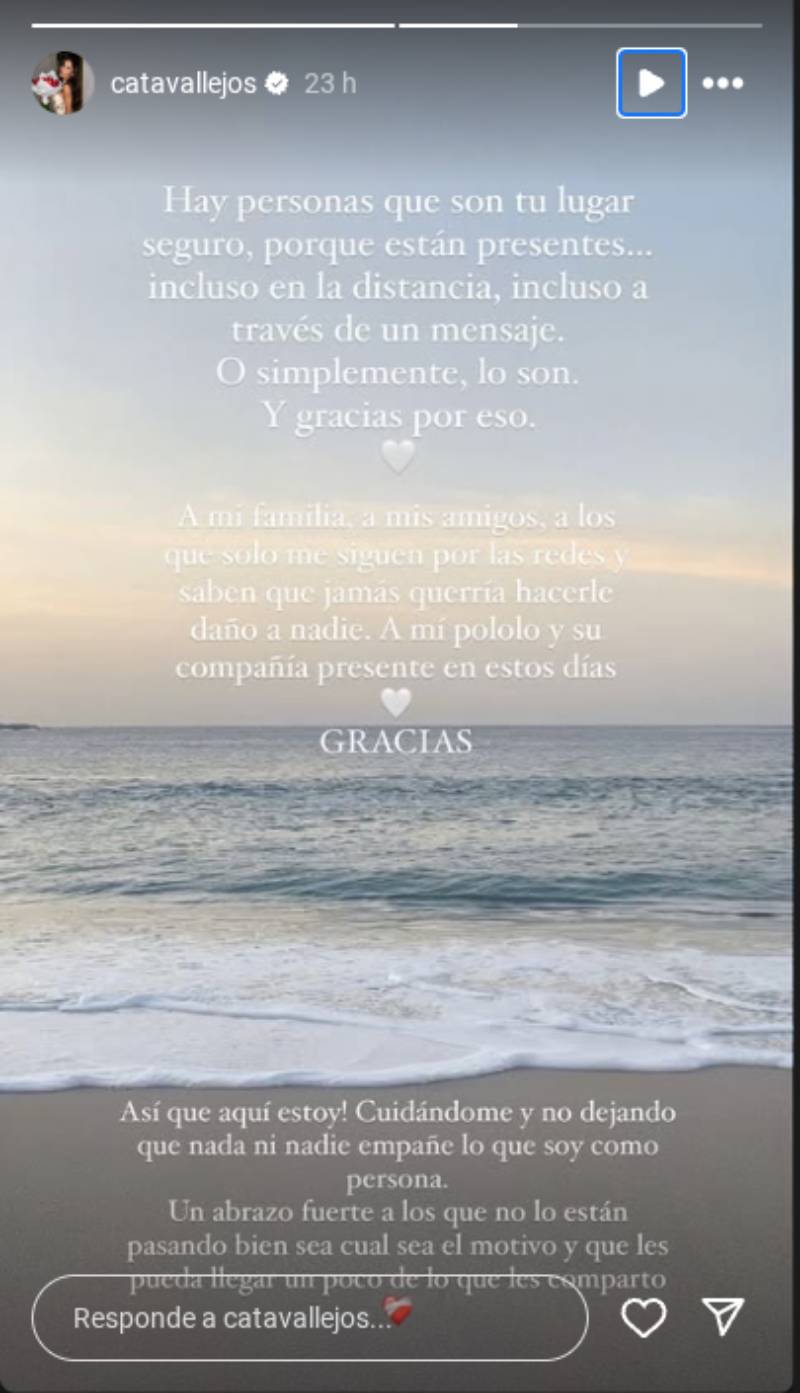 Siguiendo en la onda del amor propio, Vallejos luego publicó otra historia para agradecer a sus seguidores, familiares, amigos y a su pololo Pablo Galdames por siempre apoyarla, hacerla sentir "en un lugar seguro" y por saber que ella jamás querría hacer daño a nadie.