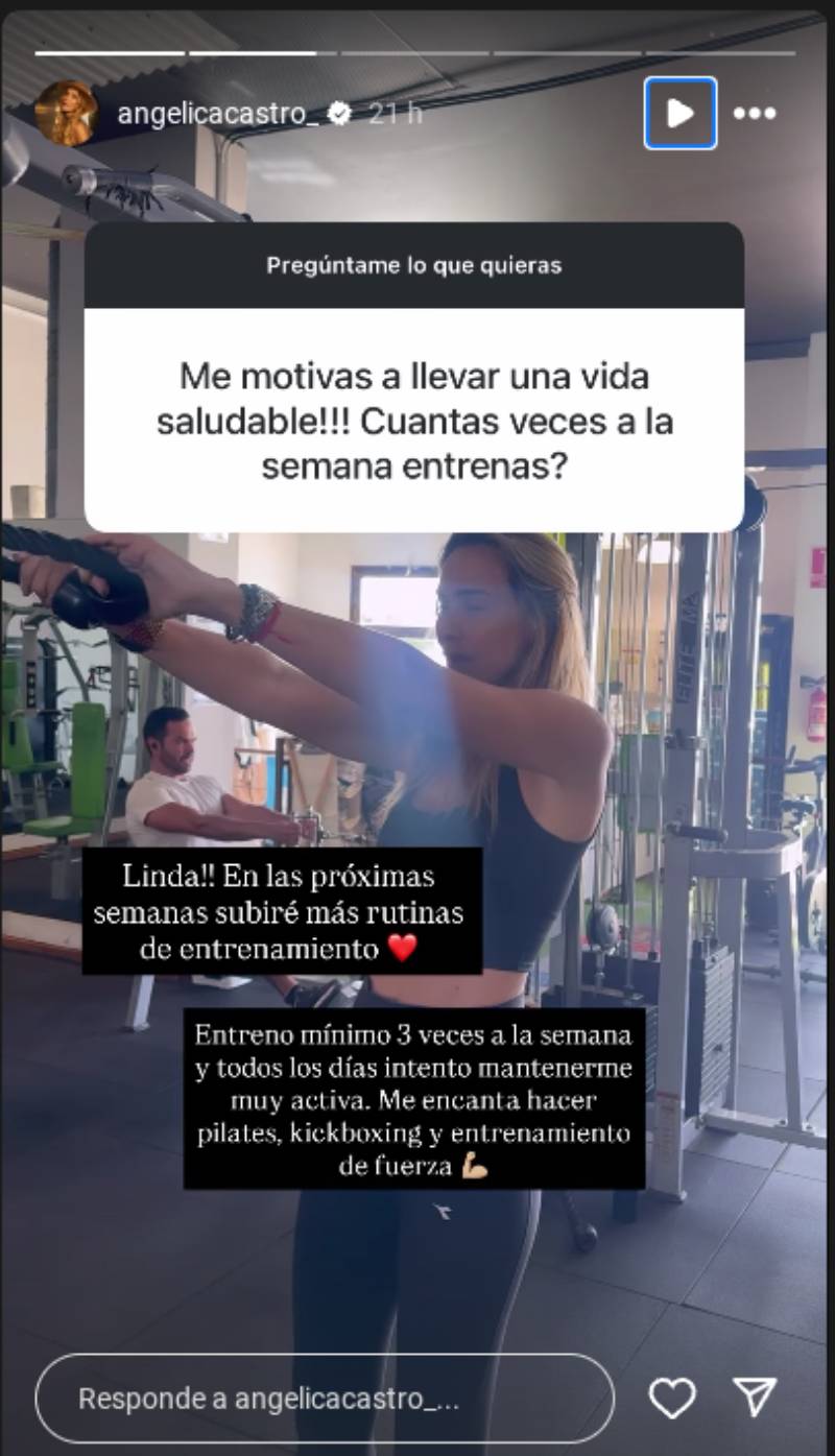 "Entreno mínimo tres veces a la semana y todos los días intento mantenerme muy activa", escribió Castro en una reciente historia, donde detalló sus tres ejercicios favoritos.