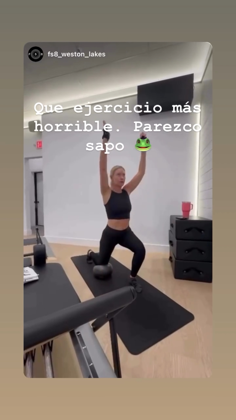 “Qué ejercicio más horrible, parezco sapo”, refirió en una historia donde etiqueta a su centro de ejercicios en Weston, ubicado en Florida, Estados Unidos.