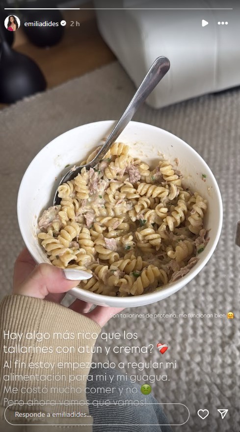 Ahora, Emilia Dides mostró un rico platillo que preparó para el almuerzo: "¿Hay algo más rico que los tallarines con atún y crema?".