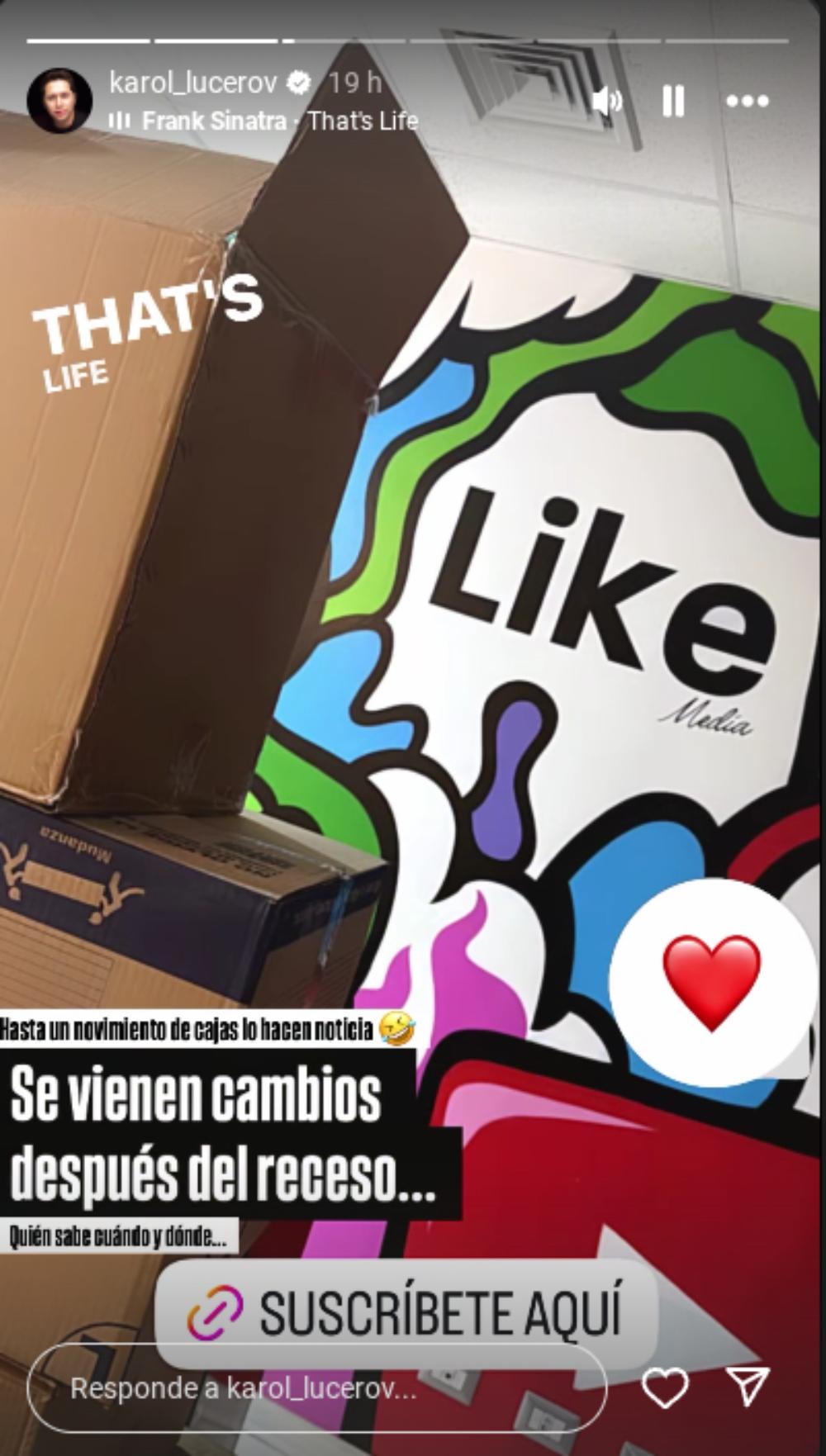 Karol Lucero reapareció en redes sociales con una historia que dejó entrever algunos cambios en su compañía de comunicaciones, Like Media. Rodeado de varias cajas, el animador insinuó que se avecina una nueva etapa de su proyecto digital.