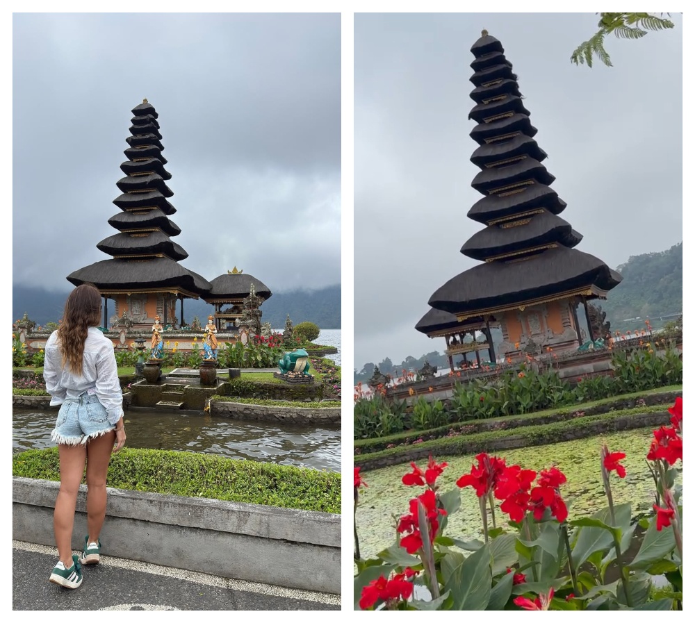 La influencer publicó, en su Instagram, varias imágenes de su visita al templo Pura Ulun Danu Bratan, a orillas del lago Bratan, en el centro de Bali.