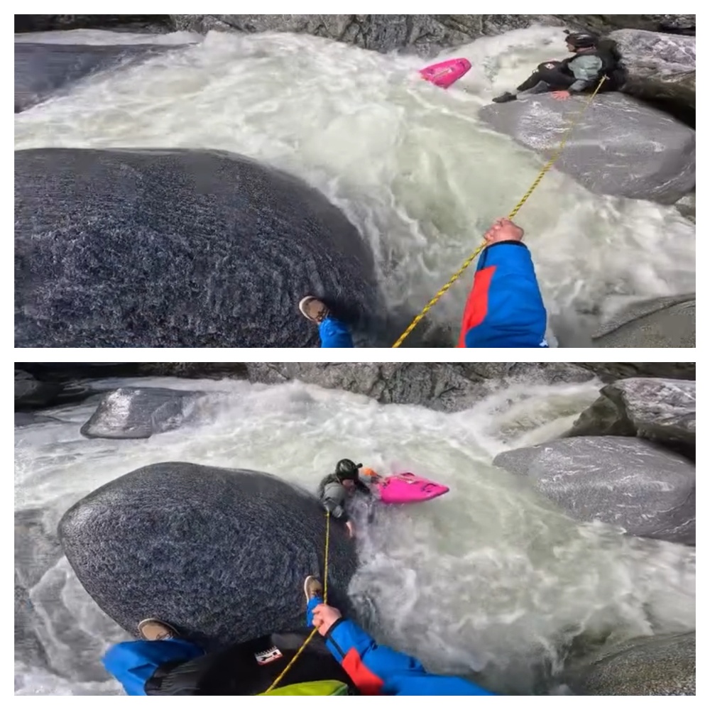 Sin embargo, la aventura no terminó como esperaban: la corriente casi se lleva uno de los kayaks, por lo que tuvieron que ponerse manos a la obra para recuperarlo.