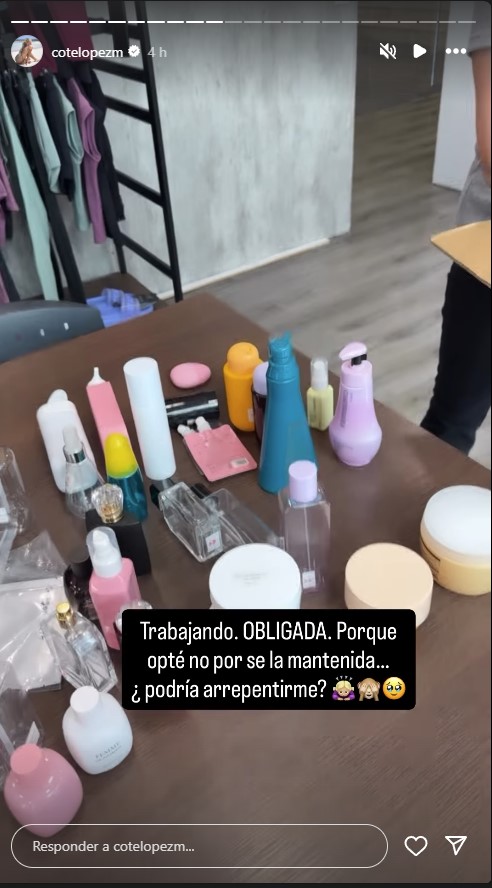 Mientras revisaban algunos productos, la exesposa de Luis Jiménez se puso a grabar y junto al registro, adjuntó un mensaje bastante curioso que parecía ser una indirecta: "Trabajando, obligada, porque opté por no ser la mantenida ¿Podría arrepentirme?".