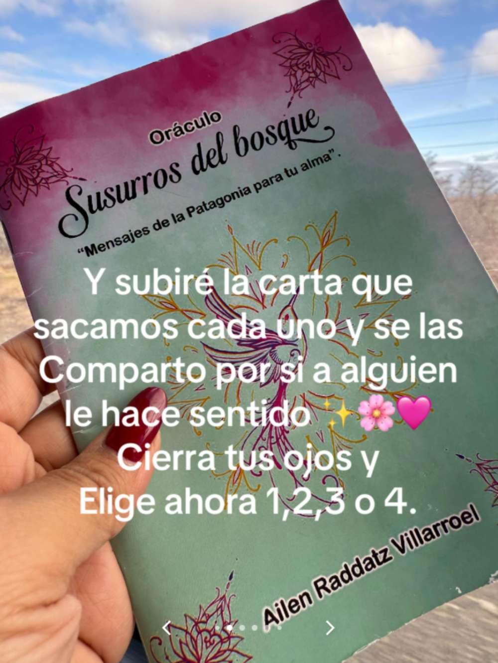 Durante un viaje de Puerto Natales a Punta Arenas, junto a su grupo de amigos decidió sacar una carta del libro “Susurros del Bosque”, que presenta animales, paisajes y plantas y las relaciona con consejos para impulsar la espiritualidad.