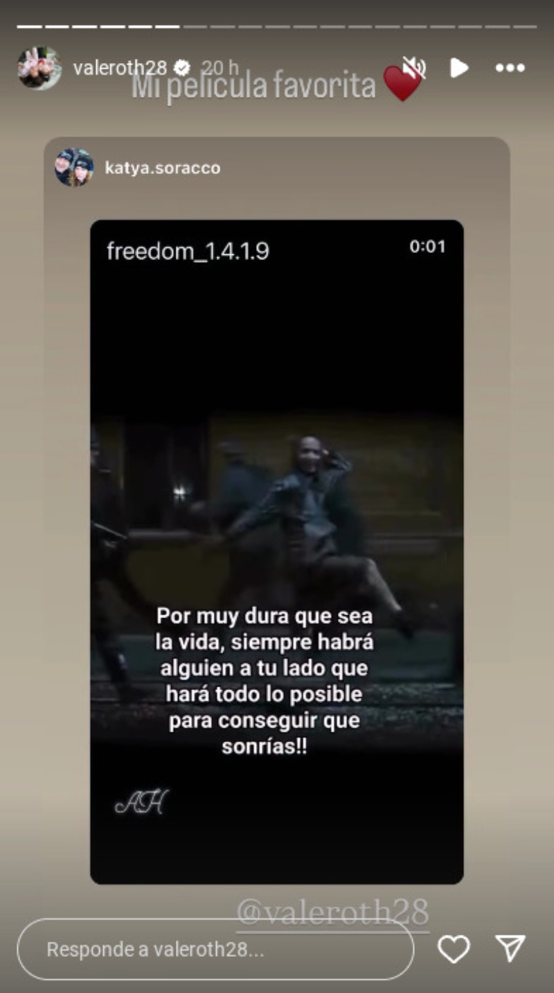 “Por muy dura que sea la vida, siempre habrá alguien a tu lado que hará todo lo posible para conseguir que sonrías”, se lee en el reel compartido por Vale Roth.