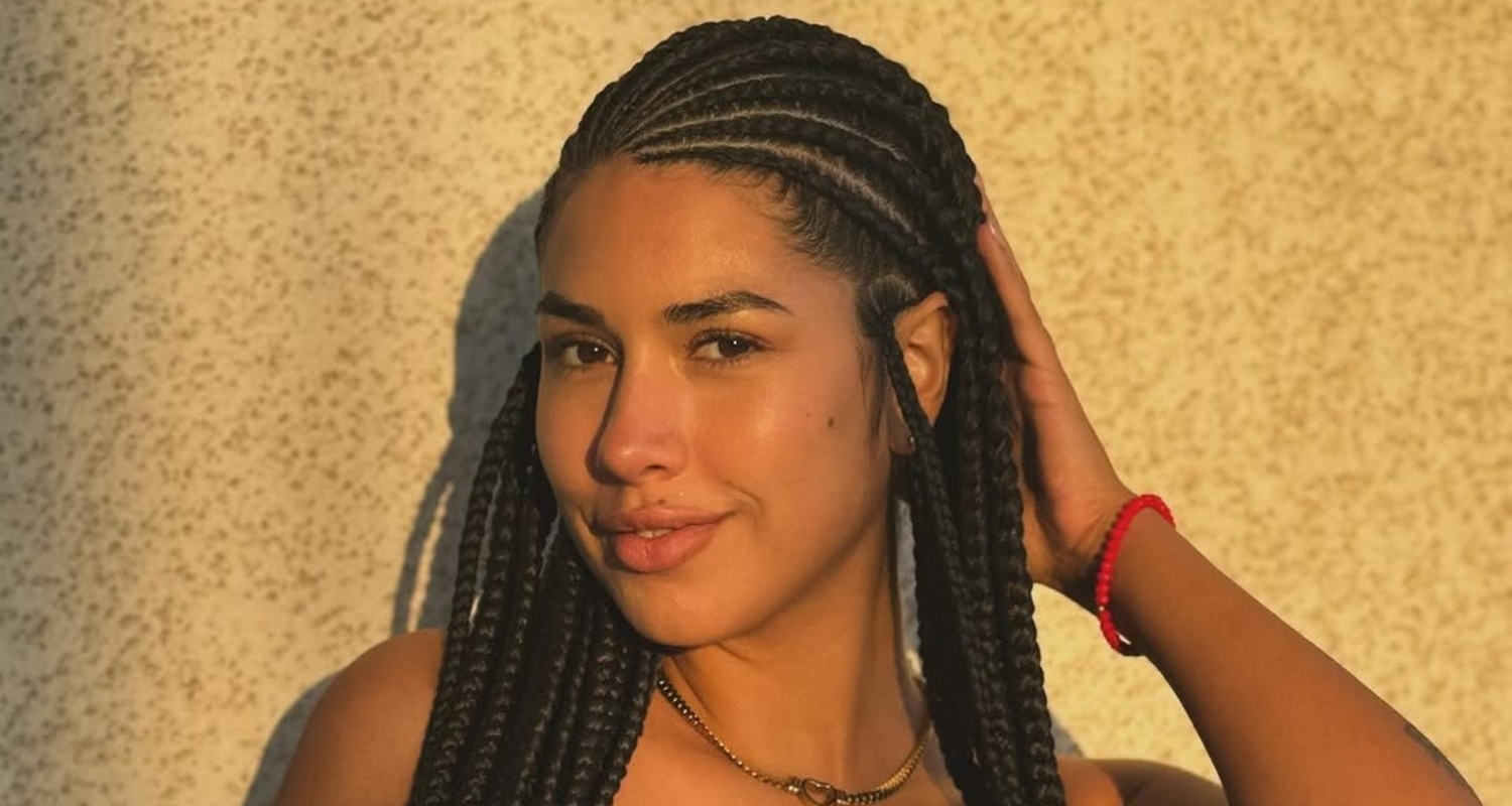 Eskarcita creó un estilismo juvenil con un top de escote strapless y con un fruncido en ambos laterales, que le proporcionó un efecto drapeado en la prenda.
