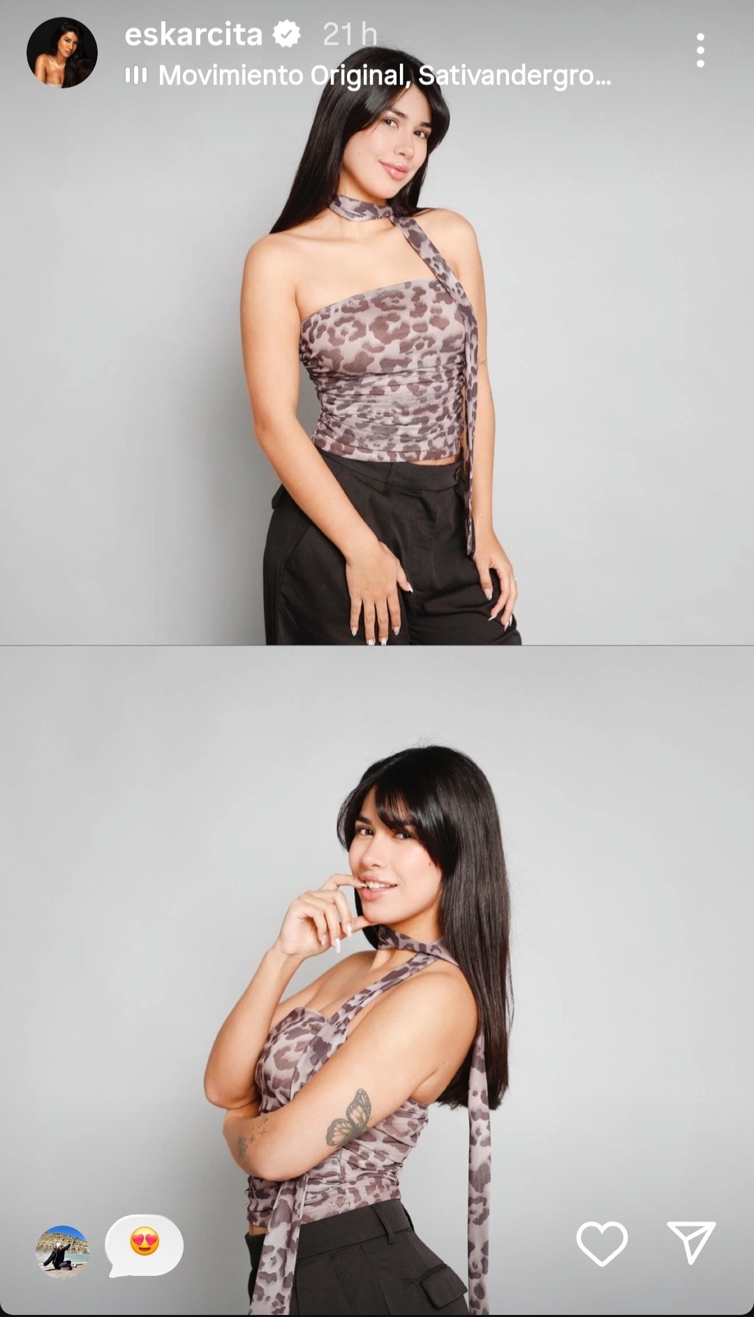 Con un cambio de look, Scarlette Gálvez, conocida en las redes como Eskarcita, apareció en un programa de televisión llevando un look casual de animal print.