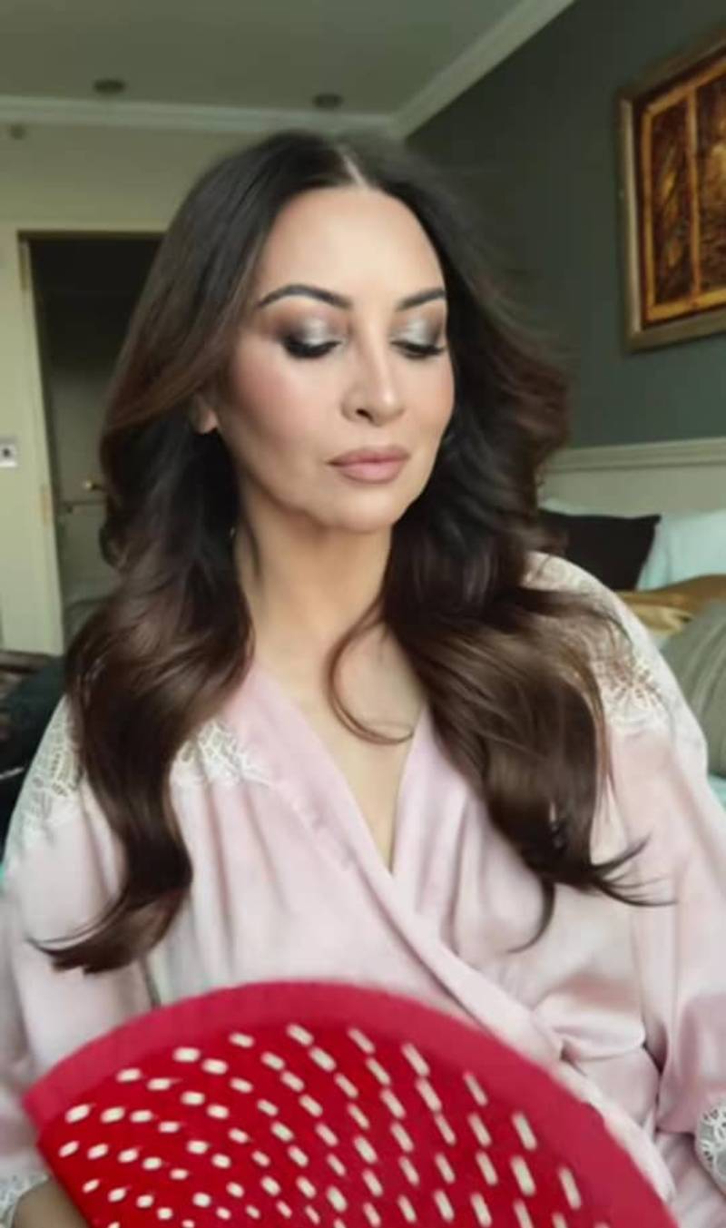 En la secuencia, Hernández luce su brillante cabello estilizado en suaves ondas y un favorecedor maquillaje de ojos ahumados con sombras negras y brillos plateados y labios en tono nude.