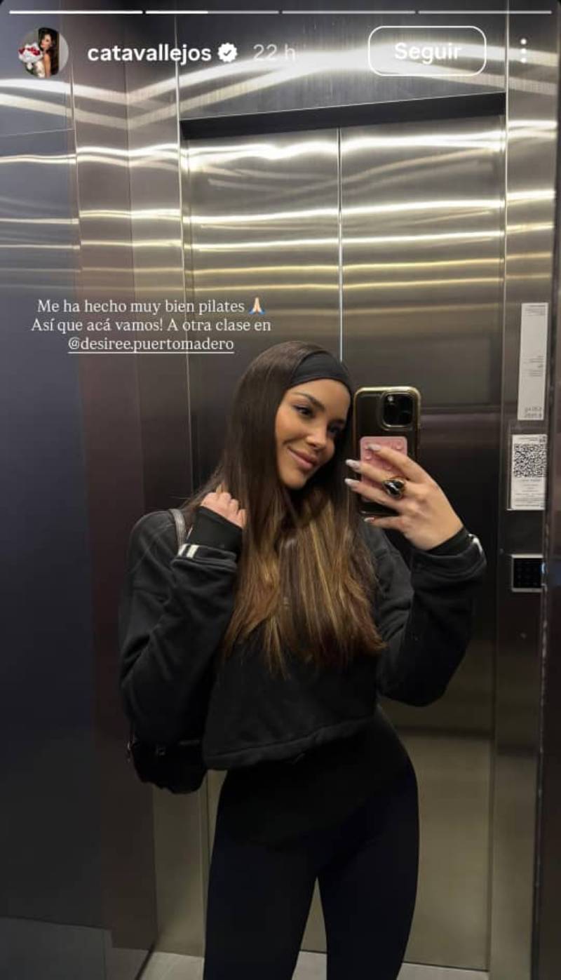 “Me ha hecho muy bien pilates. ¡Así que, acá vamos!”, escribió Catalina Vallejos en una foto que subió a historias de Instagram. En ella está sonriente y motivada, vestida con un deportivo look negro.