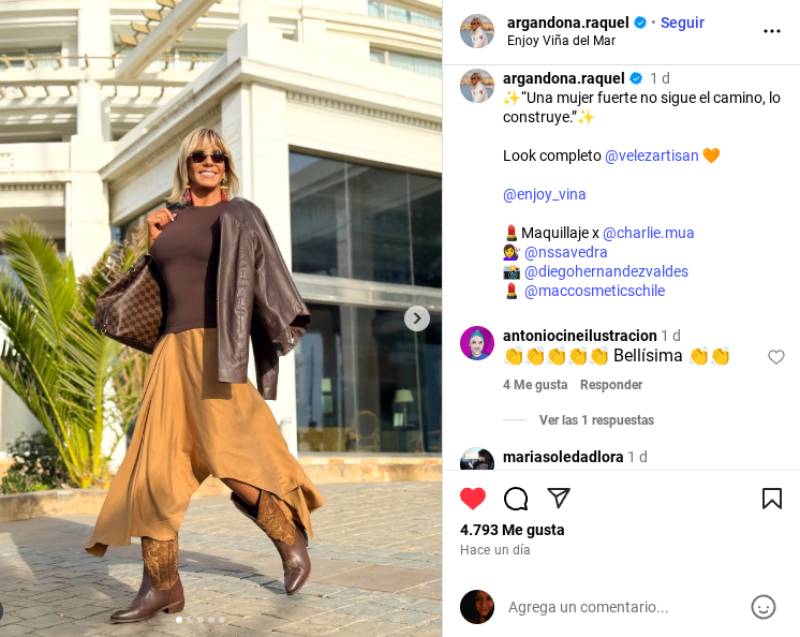 Raquel Argandoña siempre destaca en sus apariciones públicas y en redes sociales por mantenerse fiel a su estilo personal, uno que no duda en defender con actitud confiada.