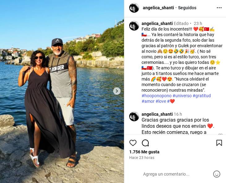 "¡Feliz día de los inocentes! Ya les contaré la historia que hay detrás de la segunda foto, solo dar las gracias al patrón y Gulek por envalentonar al novio", dijo en un post de Instagram. "No sé como, pero si es al estilo turco, son tres ceremonias. Y yo las quiero todas", agregó.