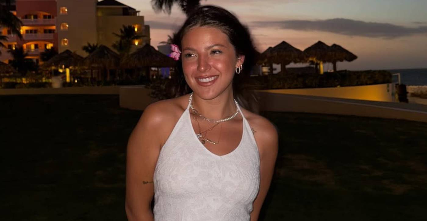 Isidora Ureta completó su look con un gorrito a croché dorado, lleno de lentejuelas. El contraste entre el accesorio y su cabello castaño en ondas suaves generó un efecto chic.