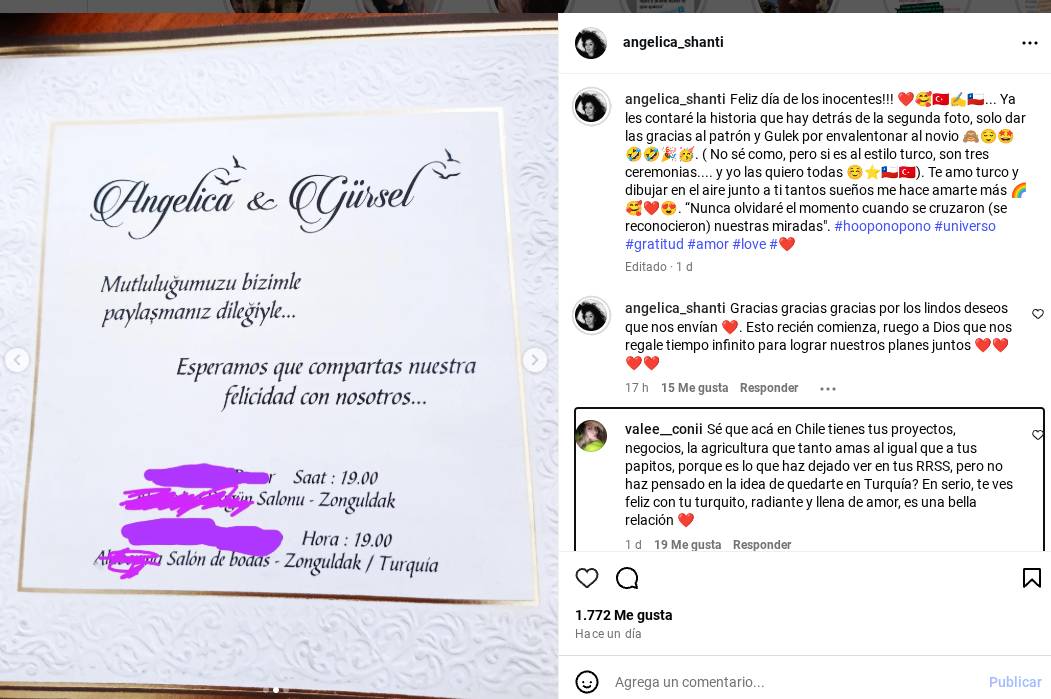 Días atrás, Angélica estremeció a su comunidad al publicar un post que incluye la invitación a su boda, con la aclaratoria de que se trata de una broma. Sin embargo, la influencer dejó entrever que una unión matrimonial no está descartada y que le gustaría celebrarla al estilo turco.