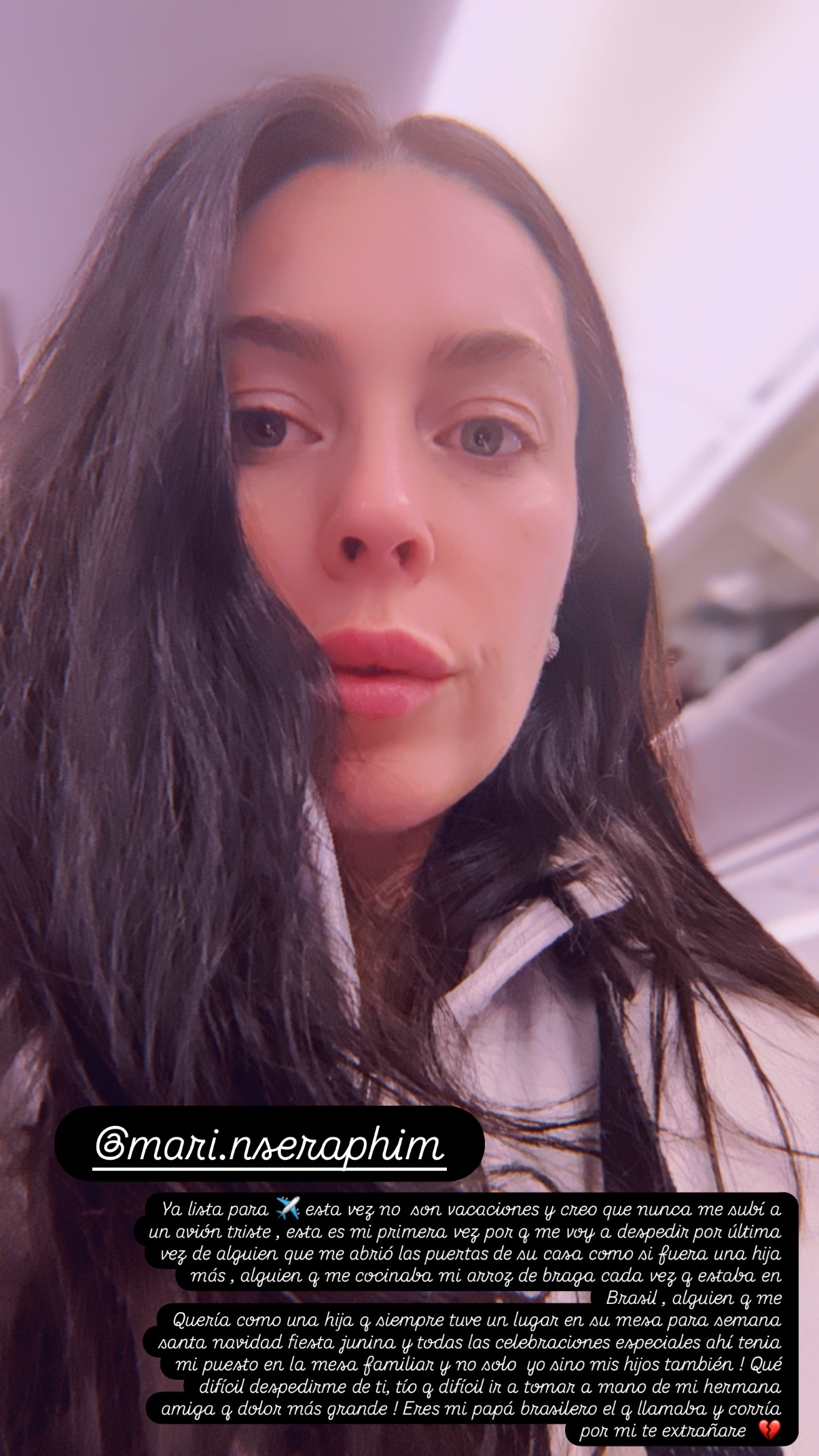 "Esta vez no son vacaciones y creo que nunca me subí a un avión triste, esta es mi primera vez. Me voy a despedir por última vez de alguien que me abrió las puertas de su casa como si fuera una hija más, alguien que me cocinaba cada vez que estaba en Brasil".