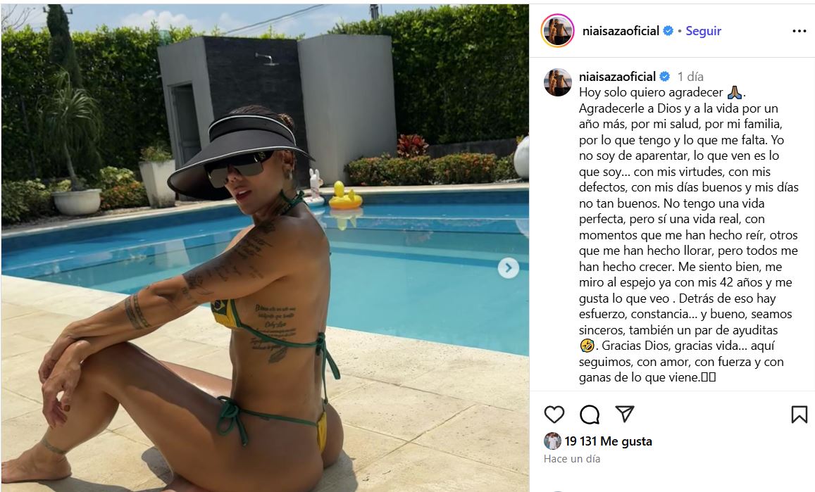 "Me siento bien, me miro al espejo ya con mis 42 años y me gusta lo que veo. Detrás de eso hay esfuerzo, constancia… y bueno, seamos sinceros, también un par de ayuditas", comentó Isaza, transparentando todo lo que ha sido su vida.