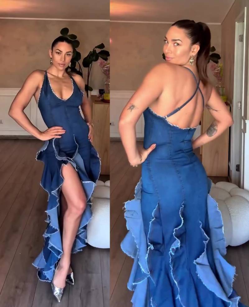 El vestido "flamenco" de Lisandra Silva confeccionado con retazos de jeans: Apostando a la moda circular