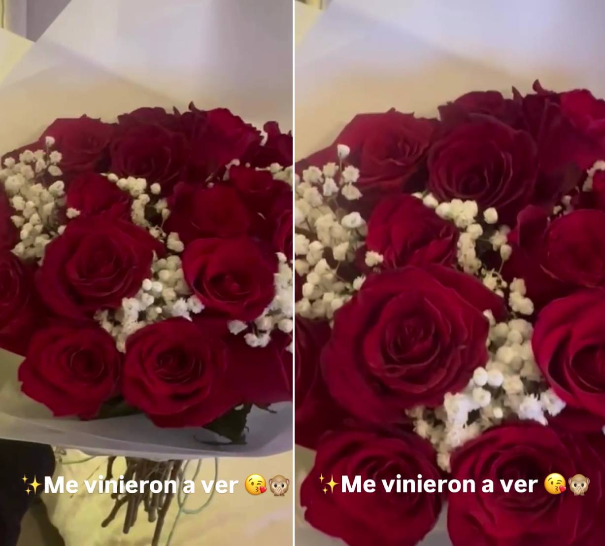 “Me vinieron a ver”, escribió en el video, en el que se observa un bouquet de rosas rojas, símbolo de la pasión y amor.