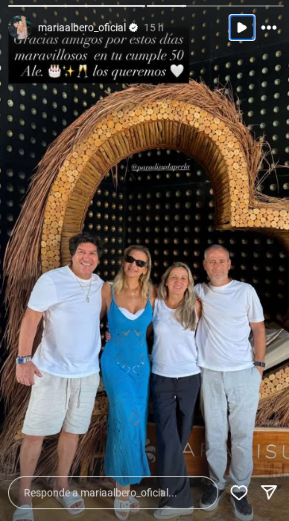 Con respecto al motivo de la visita de la pareja, Alberó publicó en sus historias que se reunieron con su amiga “Ale” para festejar los 50 años de esta, por lo que incluyó un cariñoso mensaje para ella.