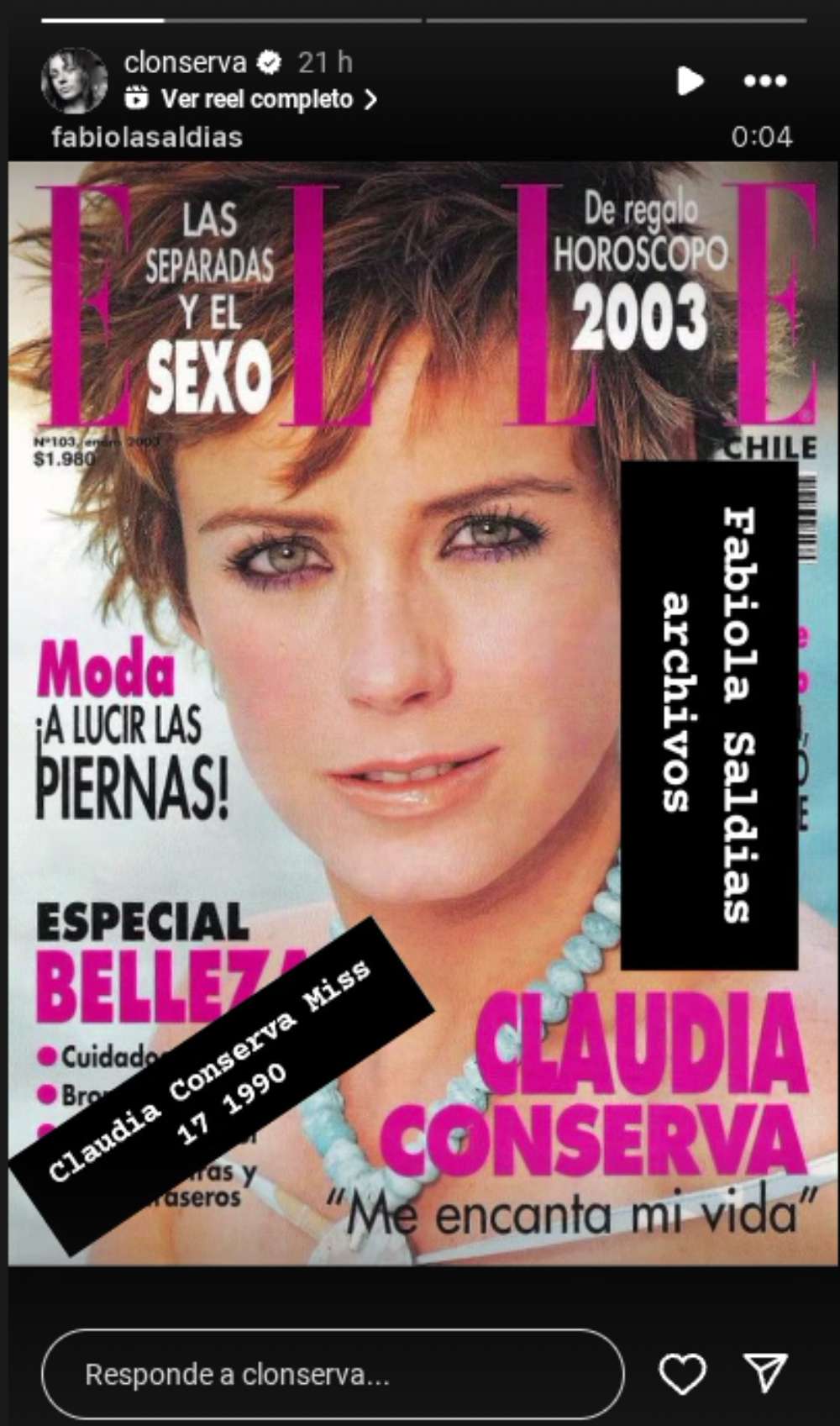 Junto a la imagen se incluyó el texto: “Claudia Conserva Miss 17 1990” recordando el título que marcó el inicio de su trayectoria y le abrió puertas en la televisión.