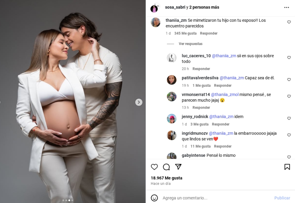 La imagen muestra a Sosa embarazada mientras Montecinos la abraza. Sin embargo, lo que más llamó la atención fue el parecido físico que muchos notaron entre el niño y el futbolista de 29 años.
