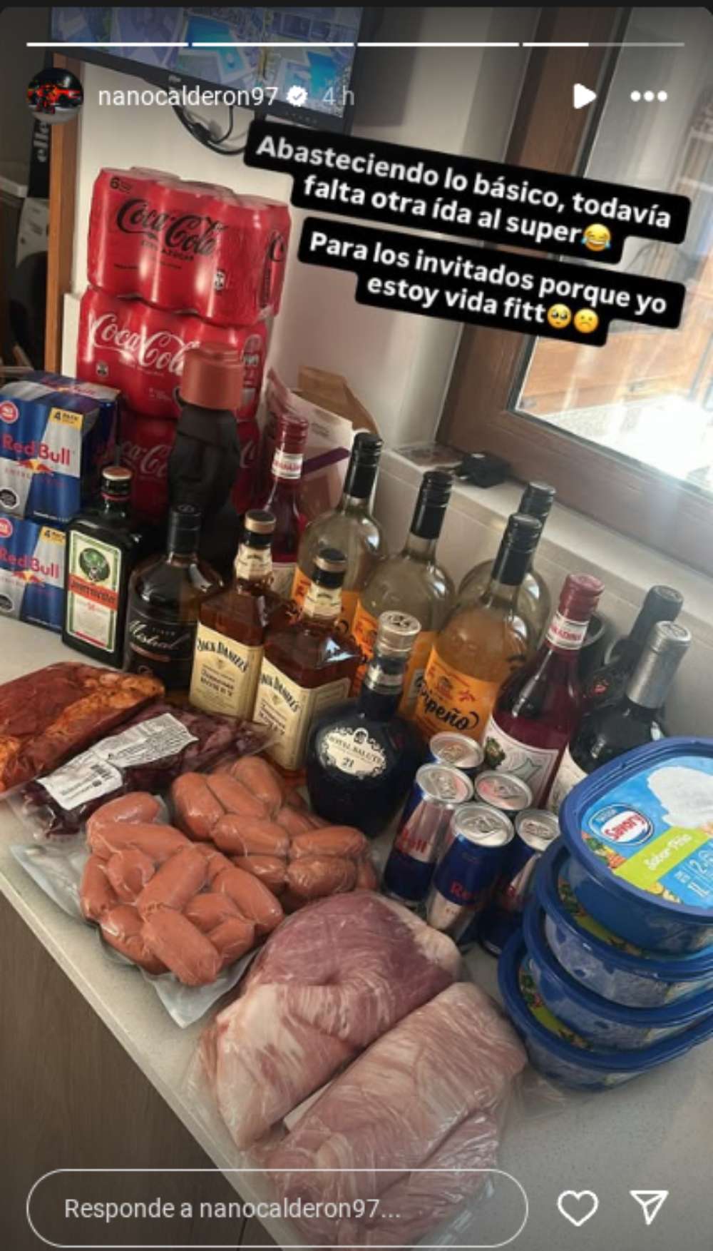 Nano, por su parte, compartió una imagen con botellas de licor, refrescos, bebidas energéticas y cortes de carne listos para el asado. “Abasteciendo lo básico, todavía falta otra ida al súper. Para los invitados porque yo estoy vida fit”, bromeó.