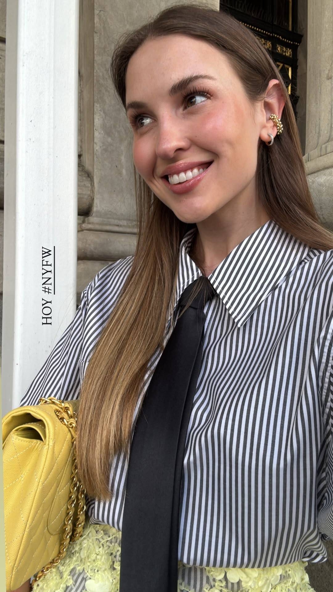 Belén Soto "sale de su zona de confort" en Nueva York con atrevida combinación de rayas, encaje y lentejuelas