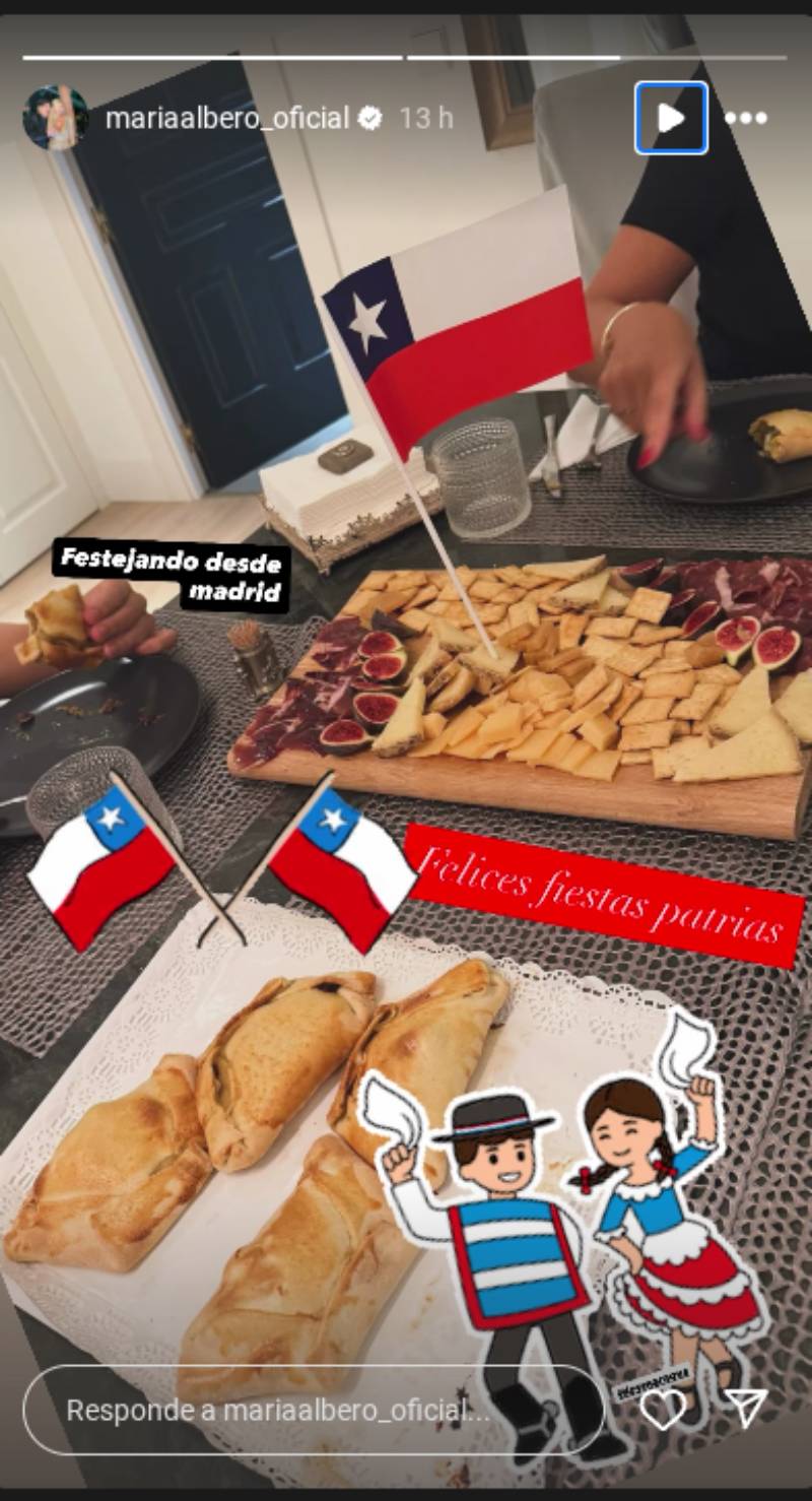 María Alberó, por su parte, mostró en sus historias cómo se respiró el ambiente dieciochero en su hogar, con una colorida tabla de quesos, embutidos e higos frescos, además de unas empanadas recien horneadas.
