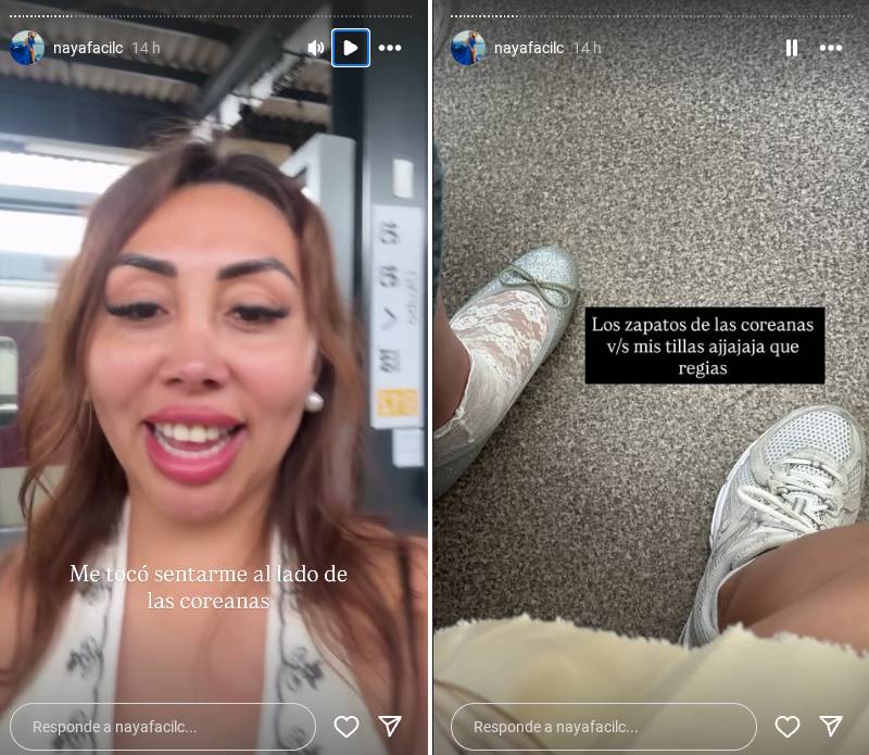 Naya comentó que había unas pasajeras surcoreanas, quienes se sentaron a su lado normalmente, y cuyos zapatos le parecieron regios a la influencer.