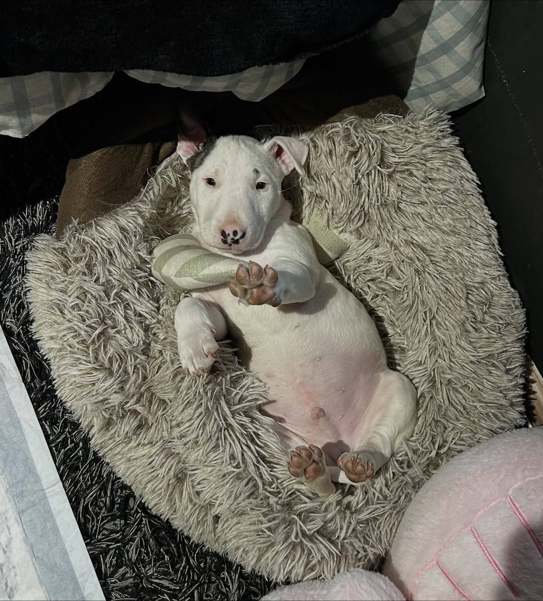 Más tarde, tanto ella como su hermano Mateo compartieron nuevas postales del bull terrier blanco con manchas negras.