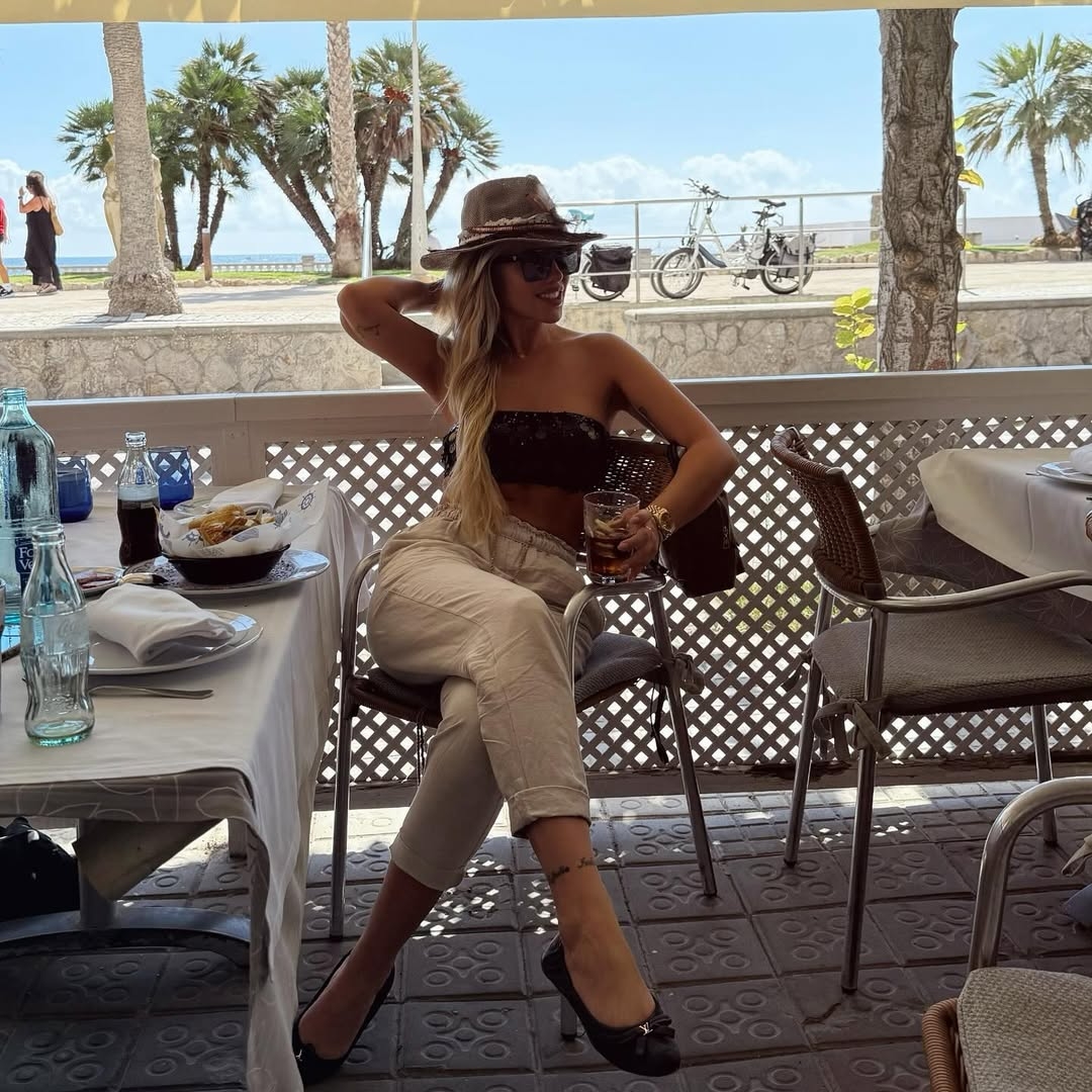 De esta manera, imprimió su estilo personal para explorar la ciudad y comer con sus cercanos en un restaurante, ubicado cerca de la costa que conecta con el extenso mar Mediterráneo.