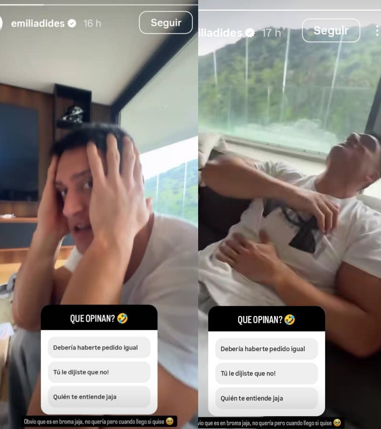Ir a la siguiente notaLa frase dejó incrédulo al exdeportista, quien se lanzó a reír en el sofá. "Obvio que es en broma. No quería pero, cuando llegó, sí quise”, aclaró Emilia en su historia, mostrando que todo se trató de un momento ligero y divertido en pareja.