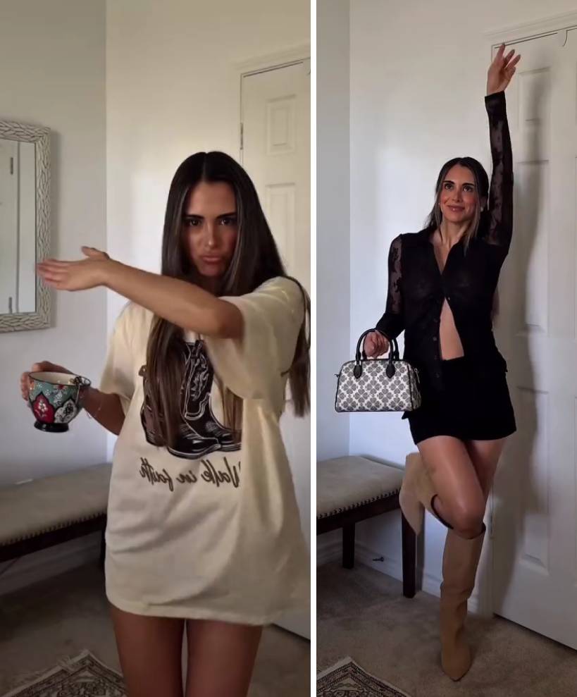 “He vuelto... hola”, escribió Fran Virgilio en un reel en el que “transforma” su apariencia en segundos para adoptar un sensual atuendo, en el que destaca su minifalda con blusa en transparencia, cerrada a un solo botón.