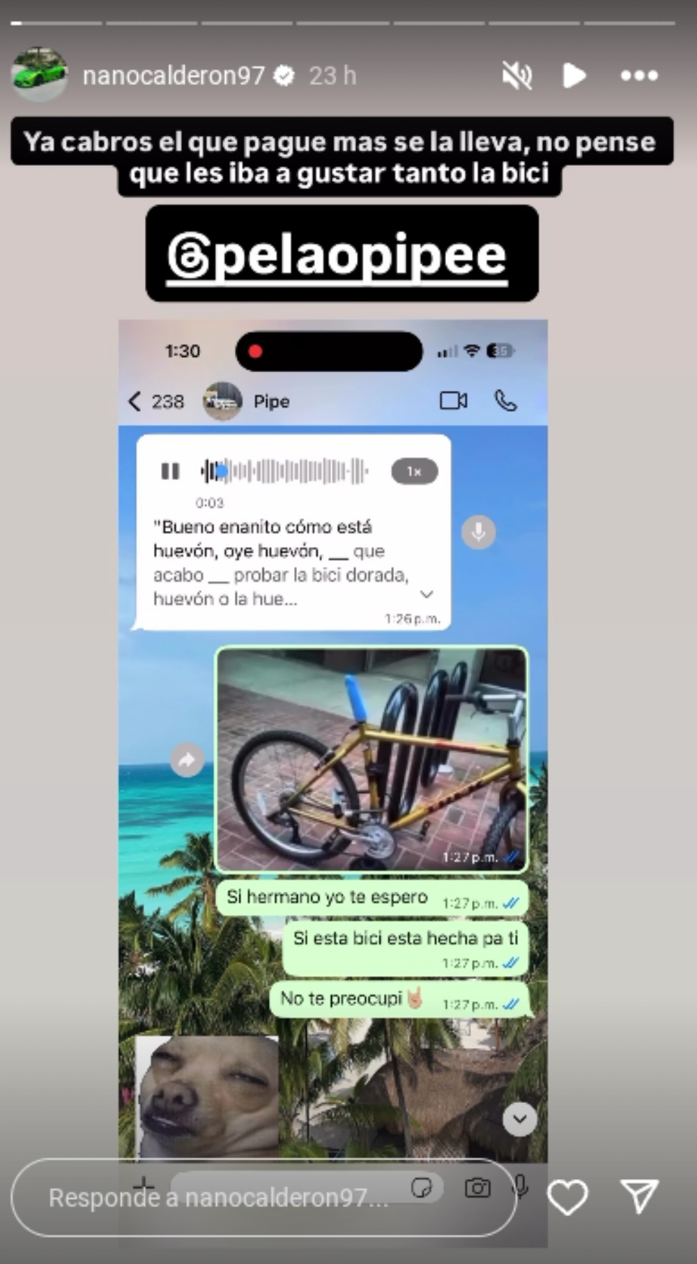 En la primera conversación que mostró en Instagram, un amigo le escribió: “Oye Nanito, ¿cómo estás? Oye, que acabo de probar la bici dorada…”. Nano le respondió con complicidad: “Sí hermano, yo te espero. Esta bici está hecha para ti, no te preocupes”.