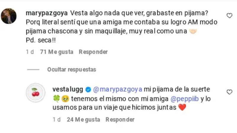 "Literal sentí que una amiga me contaba su logro AM, modo pijama chascona y sin maquillaje, muy real como una. PD: ¡Seca!", destacó al respecto una usuaria. Otra comentó: "Pura cara de niñita se te ve sin maquillaje, o sea, hermosísima".